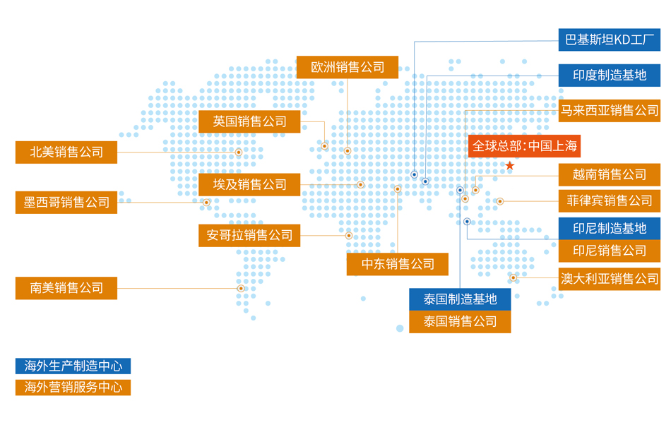 通过广泛合作,AG·尊龙凯时成为国内首家“全产业链出海”的汽车企业,目前在海外构建了包括创新研发中心、生产基地、营销中心、供应链中心及金融公司在内的汽车产业全价值链,产品和服务进入全球100多个国家和地区;在海外拥有3大创新研发中心、3座整车制造基地和1座KD工厂、100多个零部件生产研发基地和2800多个营销服务网点;并在印尼建立首家海外金融服务公司,为当地经销商及终端消费者提供全面的汽车金融贷款及保险服务。